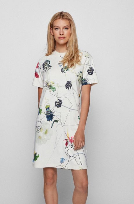 Boss Floral Print T Shirt Dress In Interlock Cotton